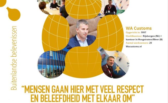 Voor de juni-editie van Globe Magazine, het tijdschrift voor leden van evofenedex, had Benny van Laerhoven van WA Customs de eer om te mogen vertellen over onze kantoren aan weerszijden van de Nederlands-Belgische grens. Het resultaat? Een interessant artikel over (kleine) cultuurverschillen, maar vooral over de kracht van internationale samenwerking.